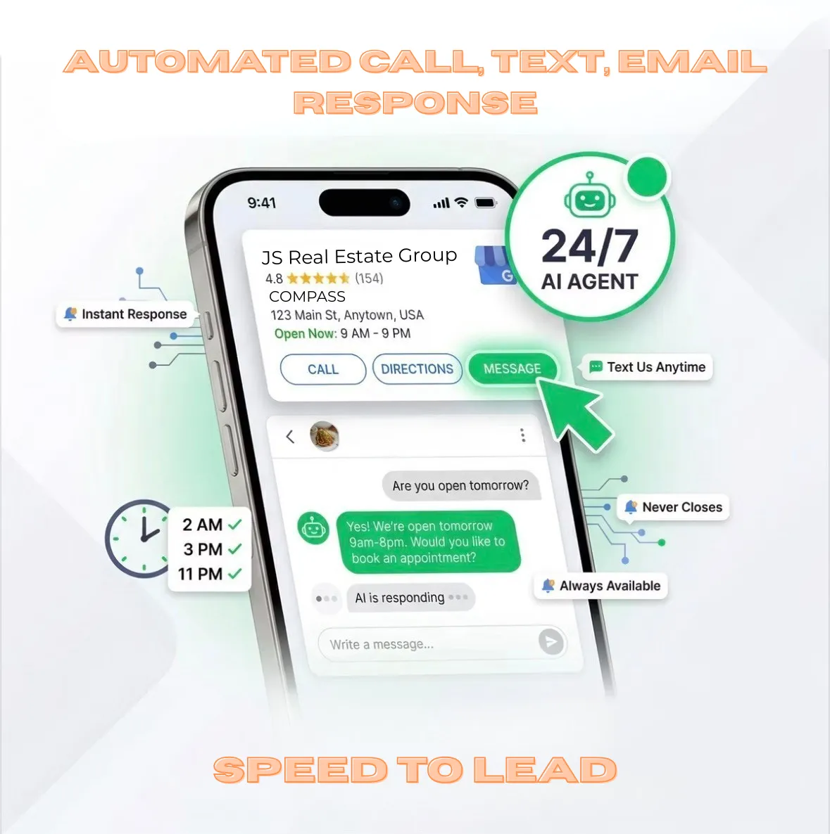 Capture more leads, respond to clients faster, automate follow-up, book more appointments on autopilot, reduce admin & marketing workload with an AI system that works 24/7.